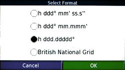 > Coordinates > Format > 'h ddd.ddddd°' > OK > Back(2).