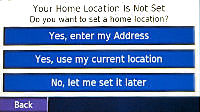 ('Your Home Location is Not Set' screen appears) tap 'Yes, use my current location' (2nd choice on the menu)(*)