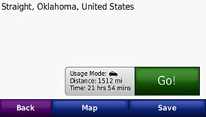 > Spell > type 'Straight' > Done > Straight, OK [PLEASE NOTICE THE MILEAGE LISTED THERE]. A small window will 'eventually' slide out from under the Go button and reveal