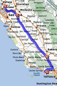 Your task is the same. You want to drive from Camarillo CA to Concord CA using the 'Inland Route', along I-5. If