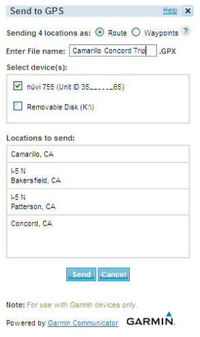name when asked [such as CA Trip 1] and check the box for your nüvi and click 'Send'.