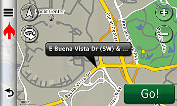 From where we were in the above paragraph, we now back out to the Main Menu and select View Map. There is our car in Chicago. Touch and drag the screen a little and zoom in. Touch the corner of the Macy's building at Washington St. and State St. and, depending upon where