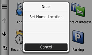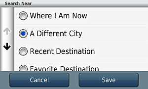 of 'Near' is found after you press the 'Where To?' from the Main Menu, then pressing the Edit icon (three parallel bars in the upper left corner of your screen.) When you press this icon the above listed choices will appear.