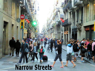 Here is my explanation. I hope it is correct. Many of the Barcelona streets, especially in the old town (tourist