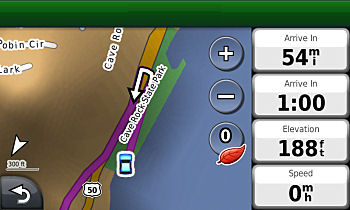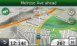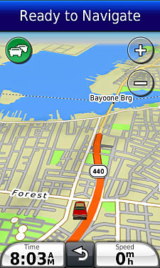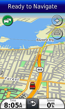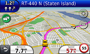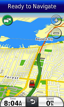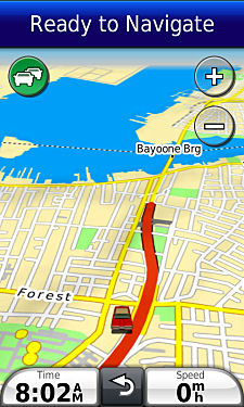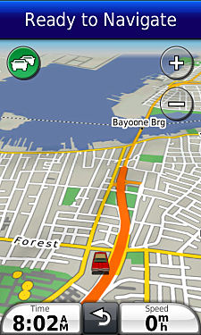 Garmin map-marked narrow street.