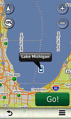 balloon will appear with identification of 'Lake' or a named lake (Lake Michigan). There are no roads here so the