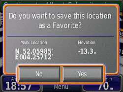 > now tap 'Set Loc.' > then 'Save' (to Favorites) > OK > hold down the Back until you reach the Main