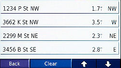 A list of hotels and motels appear which are arranged from clos est to your car to further away. Using your Down arrow you find