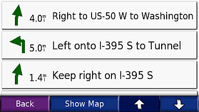 distance to that turn and the time it will take you to get there. The down arrow operation can continue until you