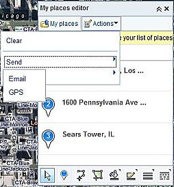 on ACTIONS in the top of the My Places Editor box. From the Actions pop-up, select SEND, then GPS
