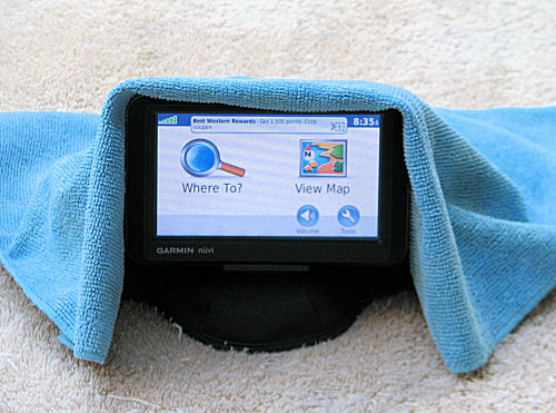 and place it over my dashboard bean bag mounted nüvi 755T. The cloth has enough body to hold it's shape and