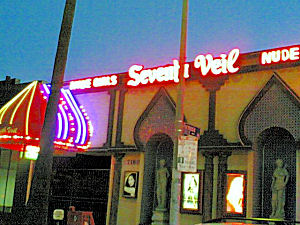 all the strip clubs in your city, that sell the special bottled water, with their longitude and latitude coordinates.
